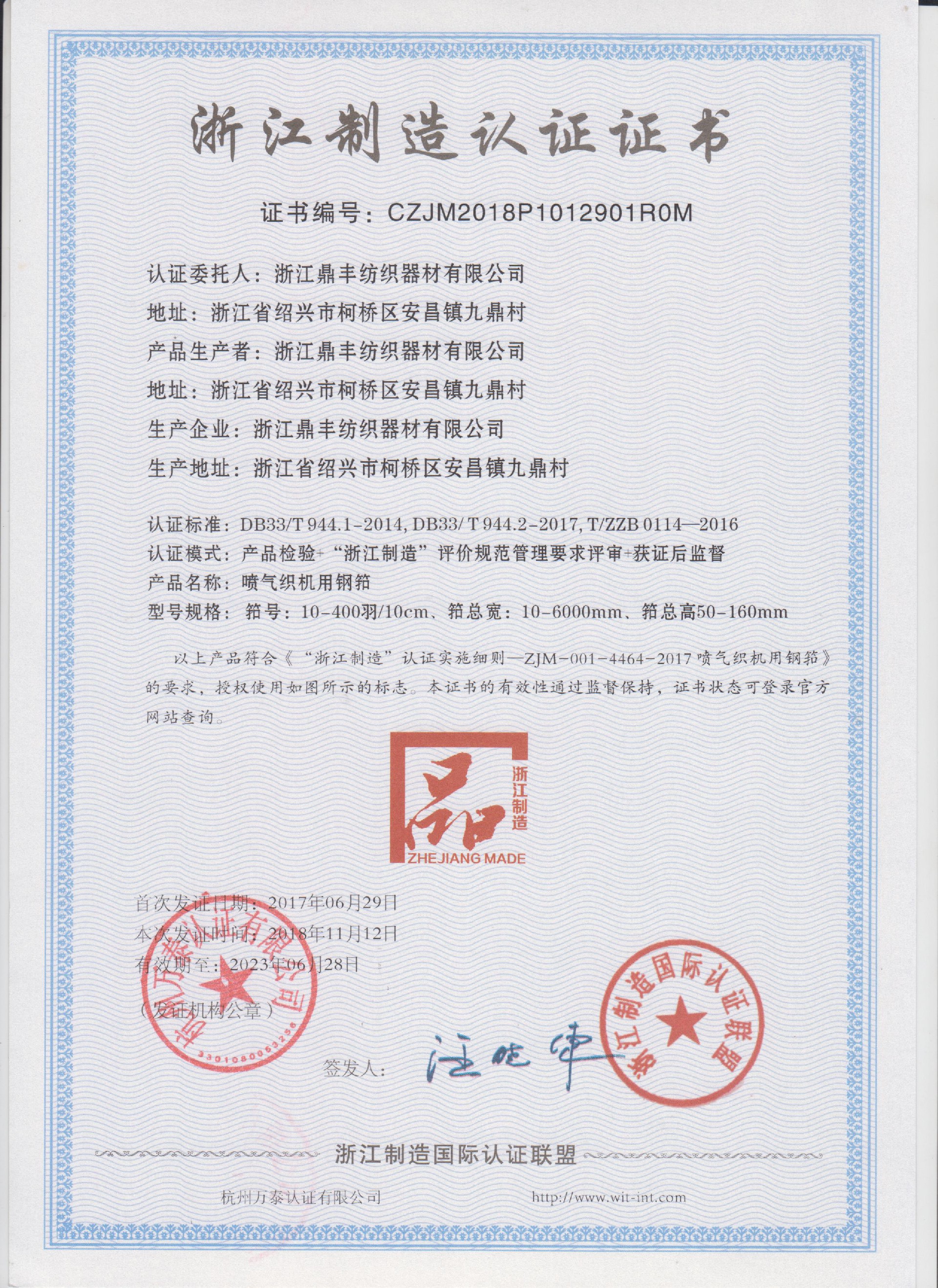 公司現(xiàn)有固定資產(chǎn)6000余萬元,員工300余人,現(xiàn)具有年產(chǎn)噴氣異型筘12萬米,劍桿筘32萬米,噴水筘5萬米,綜框20萬片,鋼片綜2億片,停經(jīng)片1.5億片, 織軸1.2萬套的生產(chǎn)能力。公司“越泉”商標(biāo)被評(píng)為“中國馳名商標(biāo)”。公司通過ISO9001 :2015國際質(zhì)量體系認(rèn)證,ISO14001:2015國際環(huán)境管理體系認(rèn)證,ISO45001:2018國際職業(yè)健康安全管理體系認(rèn)證,噴氣織機(jī)用鋼筘和織機(jī)用鋁合金綜框獲得“浙江制造”品牌認(rèn)證,公司擁有自營進(jìn)出口權(quán),產(chǎn)品暢銷全國并遠(yuǎn)銷印度、巴基斯坦、土耳其、埃及、哥倫比亞、意大利等國家和地區(qū)。